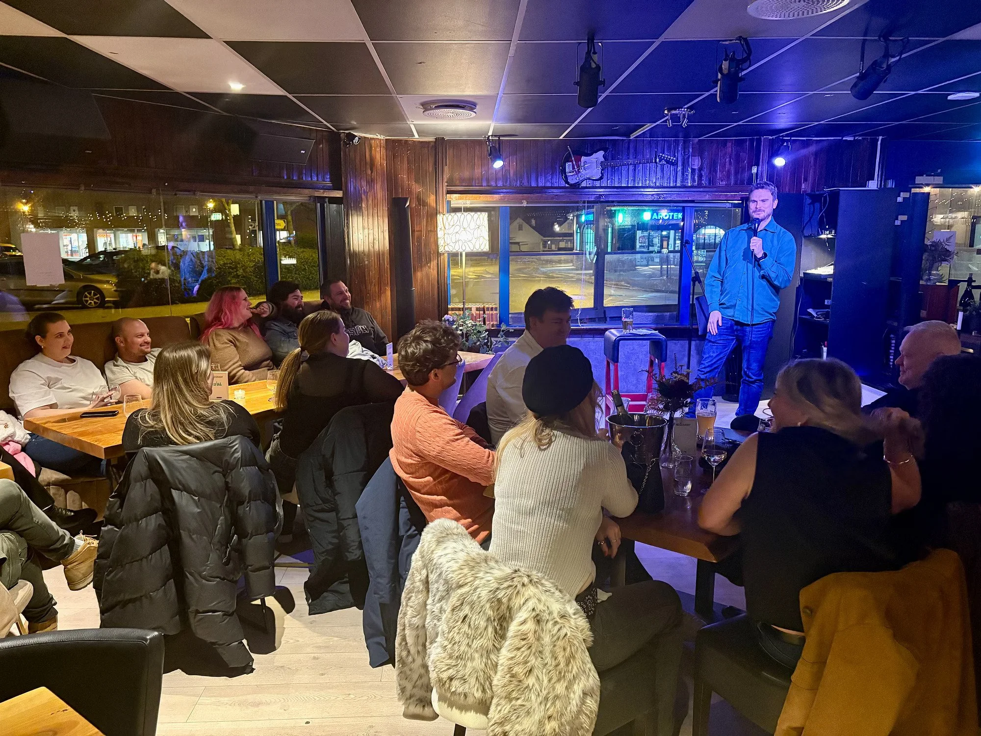 Første komiker på scenen var Steini Kvindesland, fra Haugesund. Han startet det hele med runkehumor, og testet ut grovhetsskalaen på puben i Randaberg. Folk lo, de kjente seg nok igjen.