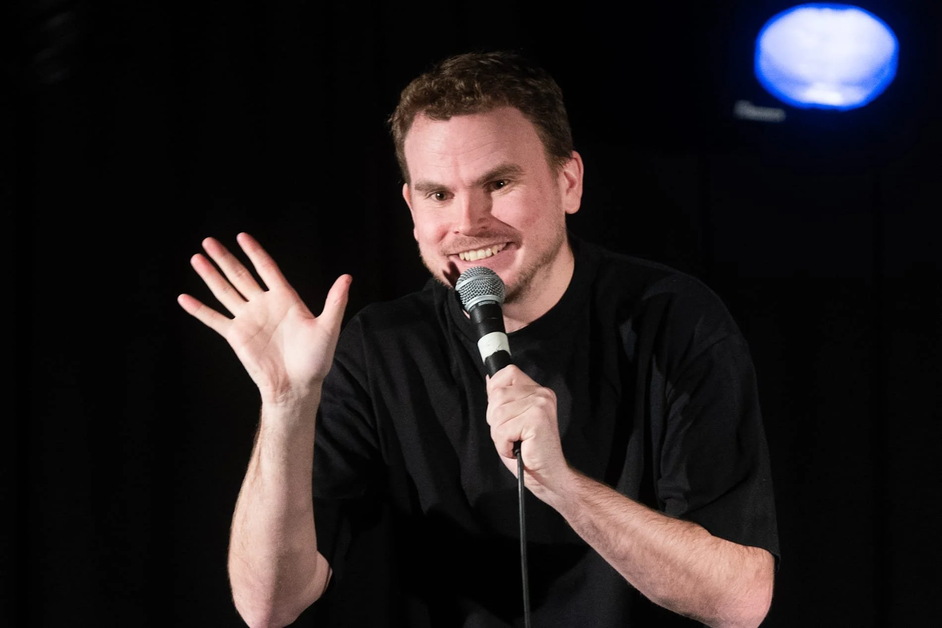 Kjetil Melkevik gikk fra Comedy Box Norway til Standup Stavanger. Bildet ble tatt under et show i Grottene på Folken i 2024. Foto: Fredrik Refvem